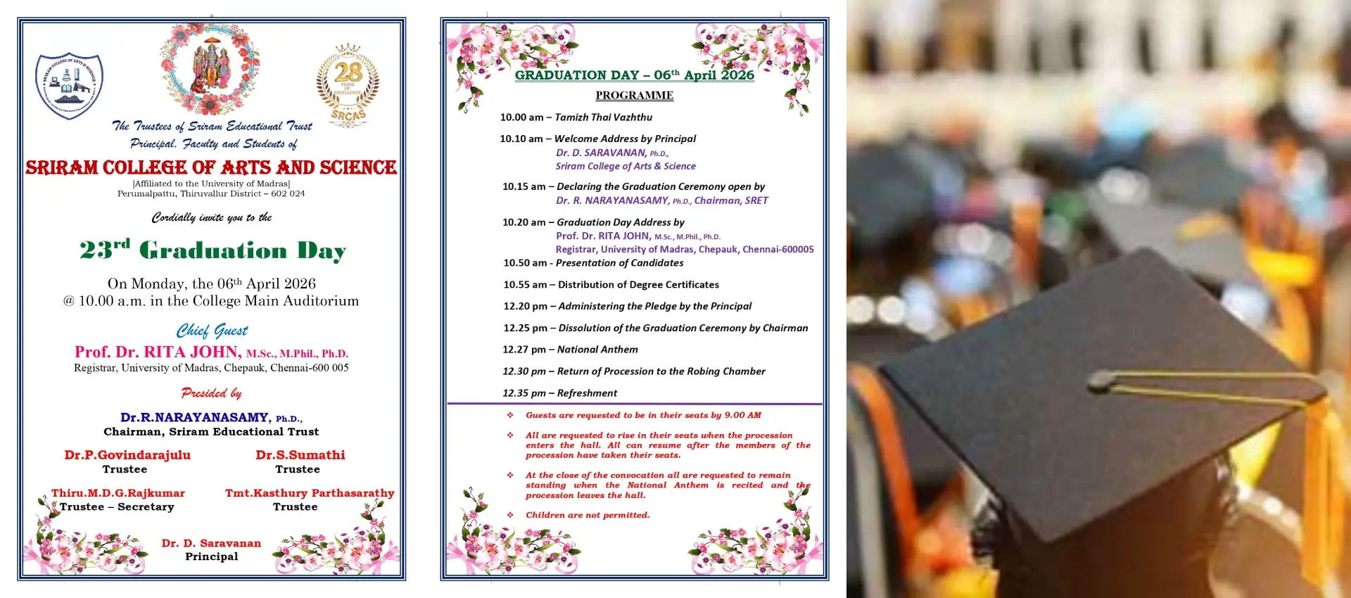 Sriram College of Arts and Science was instituted in the year 1998. It is affiliated to the University of Madras and approved by the AICTE and the Government of Tamilnadu. It is situated at Perumalpattu near Veppampattu Railway Station. This esteemed institution has been successfully servicing the society for the past 27 years and its dedicated service continues with current developments enriching the students and guiding the youngsters to pursue knowledge and higher education. The college has produced several University Rank Holders. Keeping up with this well-established tradition, the college is providing excellent placement consistently.