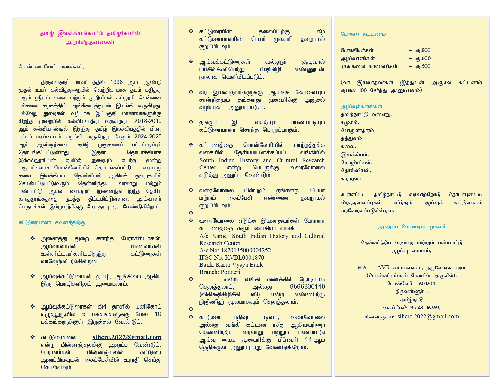 தமிழ் இலக்கியங்களில் தமிழர்களின் அறச்சிந்தனைகள் - தேசிய கருத்தரங்கம்